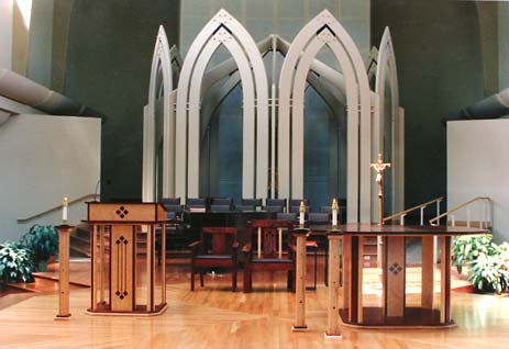 Predella Designs Lectern, Altar, Chairs and Candles view from the Nave